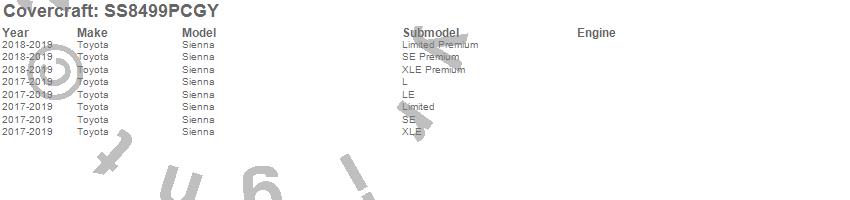 Below is an abbreviated list of applications for the SeatSaver Custom Seat Cover.Sienna, Toyota, 2019, 2018, 2017