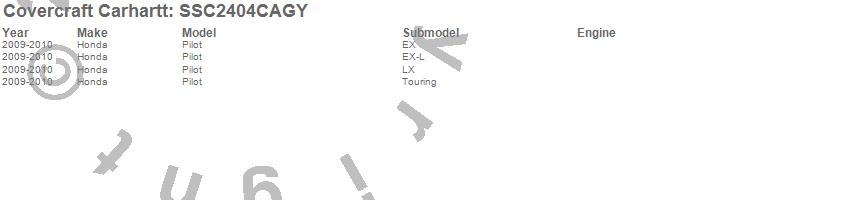 Below is an abbreviated list of applications for the Covercraft Carhartt SeatSaver.Pilot, Honda, 2010, 2009