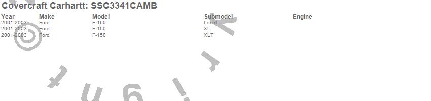 Below is an abbreviated list of applications for the Covercraft Carhartt SeatSaver.F-150, Ford, 2003, 2002, 2001