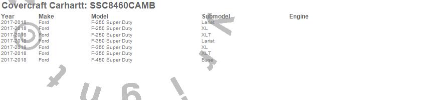 Below is an abbreviated list of applications for the Covercraft Carhartt SeatSaver.F-250 Super Duty, F-350 Super Duty, F-450 Super Duty, Ford, 2018, 2017