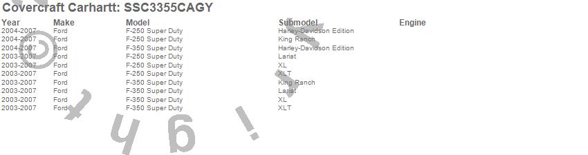 Below is an abbreviated list of applications for the Covercraft Carhartt SeatSaver.F-250 Super Duty, F-350 Super Duty, Ford, 2007, 2006, 2005, 2004, 2003