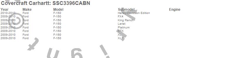 Below is an abbreviated list of applications for the Covercraft Carhartt SeatSaver.F-150, Ford, 2010, 2009