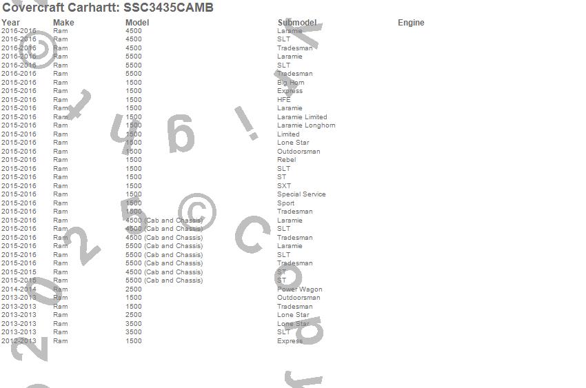 Below is an abbreviated list of applications for the Covercraft Carhartt SeatSaver.1500, 2500, 3500, 4500, 5500, Ram, 2016, 2015, 2014, 2013, 2012