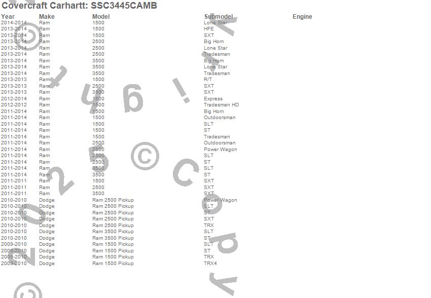 Below is an abbreviated list of applications for the Covercraft Carhartt SeatSaver.1500, 2500, 3500, Ram 1500, Ram 2500, Ram 3500, Dodge, Ram, 2014, 2013, 2012, 2011, 2010, 2009