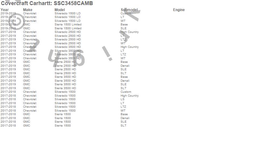 Below is an abbreviated list of applications for the Covercraft Carhartt SeatSaver.Sierra 1500, Sierra 1500 Limited, Sierra 2500 HD, Sierra 3500 HD, Silverado 1500, Silverado 1500 LD, Silverado 2500 HD, Silverado 3500 HD, Chevrolet, GMC, 2019, 2018, 2017