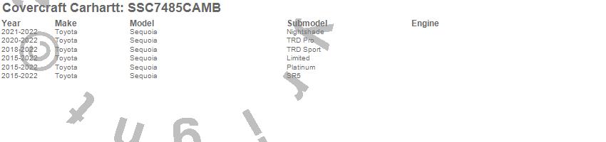 Below is an abbreviated list of applications for the Covercraft Carhartt SeatSaver.Sequoia, Toyota, 2022, 2021, 2020, 2019, 2018, 2017, 2016, 2015
