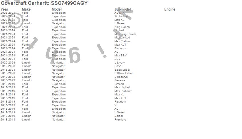 Below is an abbreviated list of applications for the Covercraft Carhartt SeatSaver.Expedition, Navigator, Ford, Lincoln, 2024, 2023, 2022, 2021, 2020, 2019, 2018