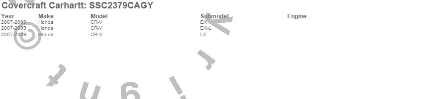 Below is an abbreviated list of applications for the Covercraft Carhartt SeatSaver.CR-V, Honda, 2009, 2008, 2007