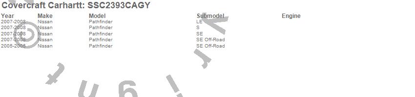 Below is an abbreviated list of applications for the Covercraft Carhartt SeatSaver.Pathfinder, Nissan, 2008, 2007, 2005