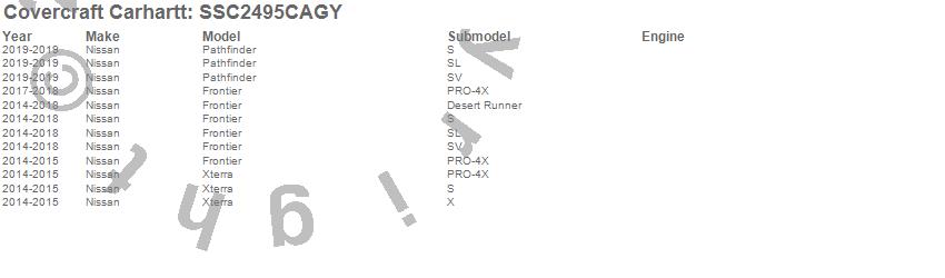 Below is an abbreviated list of applications for the Covercraft Carhartt SeatSaver.Frontier, Pathfinder, Xterra, Nissan, 2021, 2020, 2019, 2018, 2017, 2016, 2015, 2014