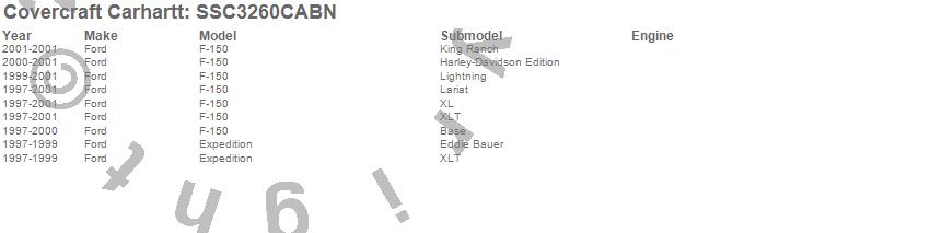 Below is an abbreviated list of applications for the Covercraft Carhartt SeatSaver.Expedition, F-150, Ford, 2001, 2000, 1999, 1998, 1997