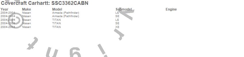 Below is an abbreviated list of applications for the Covercraft Carhartt SeatSaver.Armada (Pathfinder), TITAN, Nissan, 2004