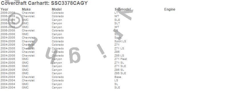 Below is an abbreviated list of applications for the Covercraft Carhartt SeatSaver.Canyon, Colorado, Chevrolet, GMC, 2009, 2008, 2007, 2006, 2005, 2004