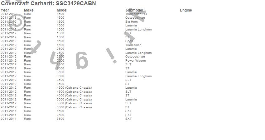 Below is an abbreviated list of applications for the Covercraft Carhartt SeatSaver.1500, 2500, 3500, 4500, 5500, Ram, 2013, 2012, 2011