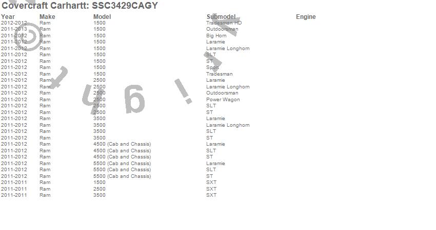 Below is an abbreviated list of applications for the Covercraft Carhartt SeatSaver.1500, 2500, 3500, 4500, 5500, Ram, 2013, 2012, 2011