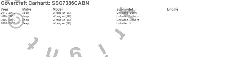 Below is an abbreviated list of applications for the Covercraft Carhartt SeatSaver.Wrangler (JK), Jeep, 2010, 2009, 2008, 2007
