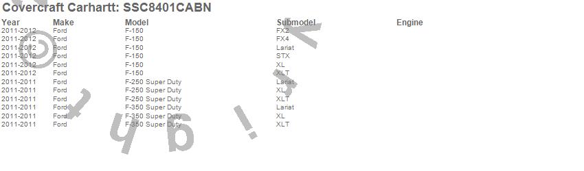 Below is an abbreviated list of applications for the Covercraft Carhartt SeatSaver.F-150, F-250 Super Duty, F-350 Super Duty, Ford, 2012, 2011