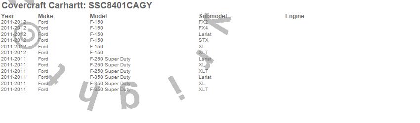 Below is an abbreviated list of applications for the Covercraft Carhartt SeatSaver.F-150, F-250 Super Duty, F-350 Super Duty, Ford, 2012, 2011