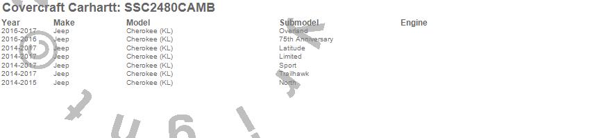 Below is an abbreviated list of applications for the Covercraft Carhartt SeatSaver.Cherokee (KL), Jeep, 2017, 2016, 2015, 2014
