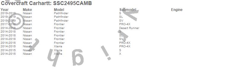 Below is an abbreviated list of applications for the Covercraft Carhartt SeatSaver.Frontier, Pathfinder, Xterra, Nissan, 2021, 2020, 2019, 2018, 2017, 2016, 2015, 2014