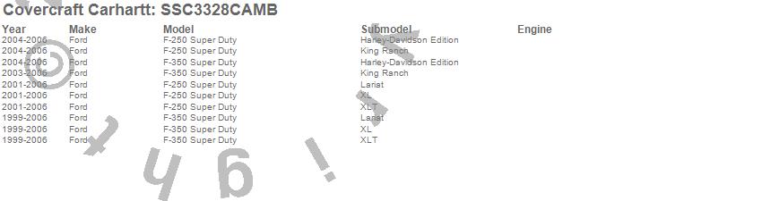 Below is an abbreviated list of applications for the Covercraft Carhartt SeatSaver.F-250 Super Duty, F-350 Super Duty, Ford, 2006, 2005, 2004, 2003, 2002, 2001, 2000, 1999