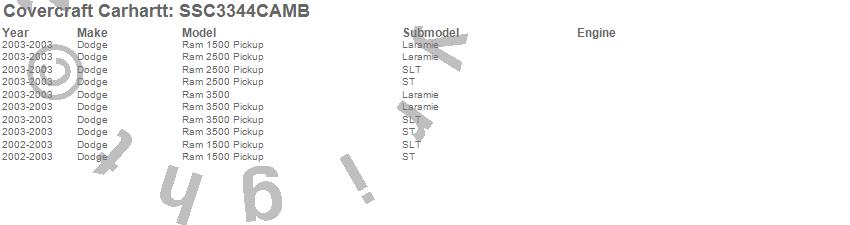 Below is an abbreviated list of applications for the Covercraft Carhartt SeatSaver.Ram 1500, Ram 2500, Ram 3500, Dodge, 2003, 2002