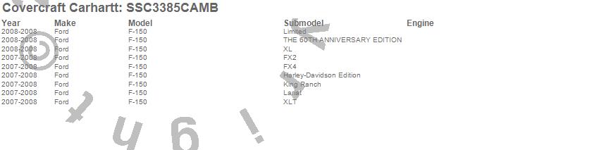 Below is an abbreviated list of applications for the Covercraft Carhartt SeatSaver.F-150, Ford, 2008, 2007