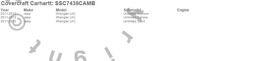 Below is an abbreviated list of applications for the Covercraft Carhartt SeatSaver.Wrangler (JK), Jeep, 2012, 2011
