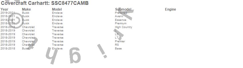 Below is an abbreviated list of applications for the Covercraft Carhartt SeatSaver.Enclave, Traverse, Buick, Chevrolet, 2023, 2022, 2021, 2020, 2019, 2018