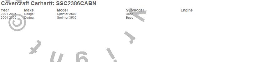 Below is an abbreviated list of applications for the Covercraft Carhartt SeatSaver.Sprinter 2500, Sprinter 3500, Dodge, 2006, 2005, 2004