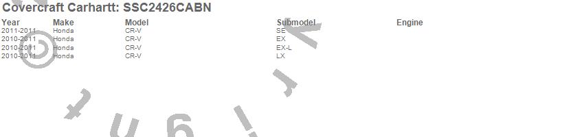 Below is an abbreviated list of applications for the Covercraft Carhartt SeatSaver.CR-V, Honda, 2011, 2010