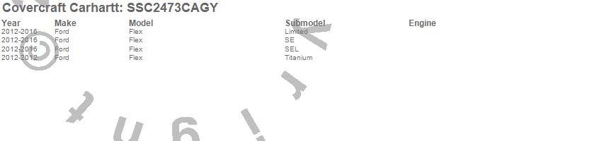Below is an abbreviated list of applications for the Covercraft Carhartt SeatSaver.Flex, Ford, 2016, 2015, 2014, 2013, 2012