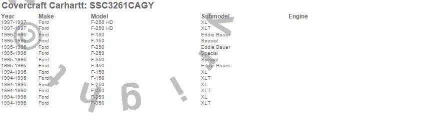 Below is an abbreviated list of applications for the Covercraft Carhartt SeatSaver.F-150, F-250, F-250 HD, F-350, Ford, 1997, 1996, 1995, 1994