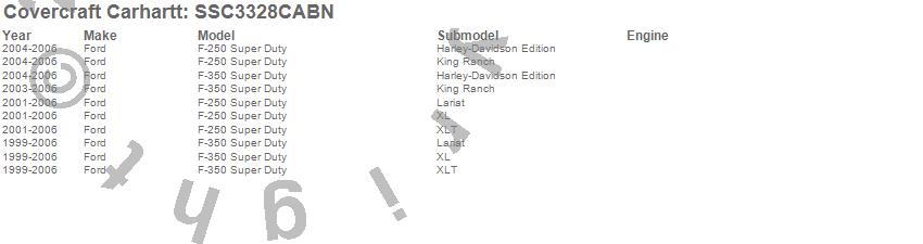 Below is an abbreviated list of applications for the Covercraft Carhartt SeatSaver.F-250 Super Duty, F-350 Super Duty, Ford, 2006, 2005, 2004, 2003, 2002, 2001, 2000, 1999