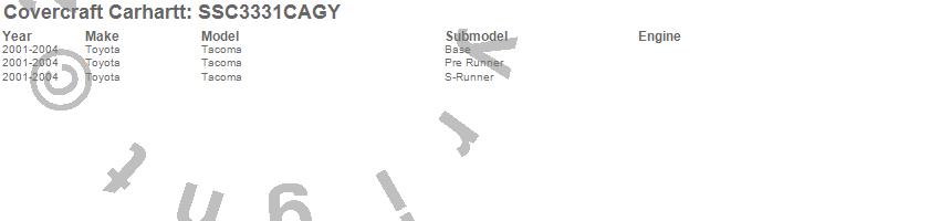 Below is an abbreviated list of applications for the Covercraft Carhartt SeatSaver.Tacoma, Toyota, 2004, 2003, 2002, 2001