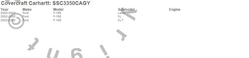Below is an abbreviated list of applications for the Covercraft Carhartt SeatSaver.F-150, Ford, 2002