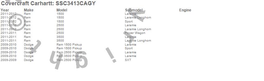 Below is an abbreviated list of applications for the Covercraft Carhartt SeatSaver.1500, 2500, 3500, Ram 1500, Ram 2500, Ram 3500, Dodge, Ram, 2012, 2011, 2010, 2009