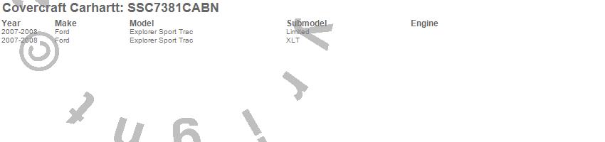 Below is an abbreviated list of applications for the Covercraft Carhartt SeatSaver.Explorer Sport Trac, Ford, 2008, 2007