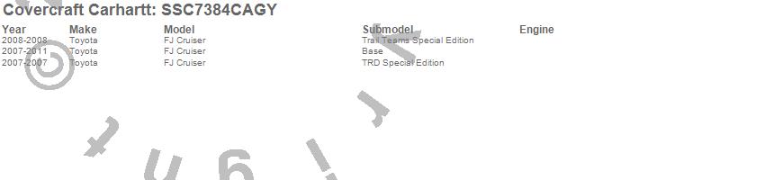 Below is an abbreviated list of applications for the Covercraft Carhartt SeatSaver.FJ Cruiser, Toyota, 2011, 2010, 2009, 2008, 2007