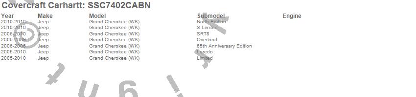 Below is an abbreviated list of applications for the Covercraft Carhartt SeatSaver.Grand Cherokee (WK), Jeep, 2010, 2009, 2008, 2007, 2006, 2005