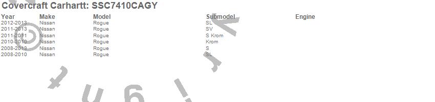 Below is an abbreviated list of applications for the Covercraft Carhartt SeatSaver.Rogue, Nissan, 2013, 2012, 2011, 2010, 2009, 2008