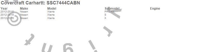 Below is an abbreviated list of applications for the Covercraft Carhartt SeatSaver.Xterra, Nissan, 2015, 2014, 2013, 2012