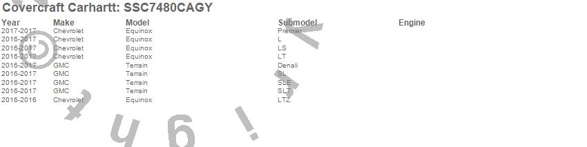 Below is an abbreviated list of applications for the Covercraft Carhartt SeatSaver.Equinox, Terrain, Chevrolet, GMC, 2017, 2016