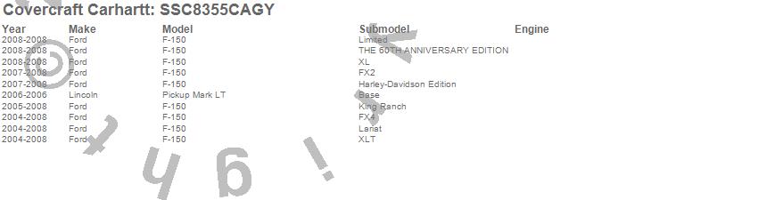 Below is an abbreviated list of applications for the Covercraft Carhartt SeatSaver.F-150, Mark LT, Ford, Lincoln, 2008, 2007, 2006, 2005, 2004