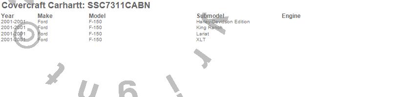 Below is an abbreviated list of applications for the Covercraft Carhartt SeatSaver.F-150, Ford, 2001