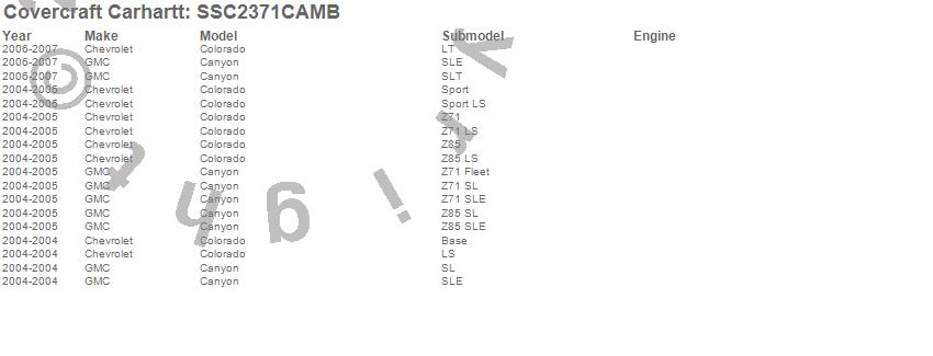 Below is an abbreviated list of applications for the Covercraft Carhartt SeatSaver.Canyon, Colorado, Chevrolet, GMC, 2007, 2006, 2005, 2004