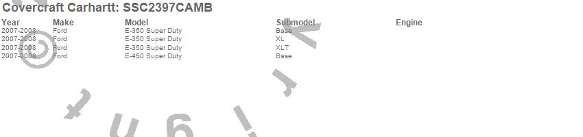 Below is an abbreviated list of applications for the Covercraft Carhartt SeatSaver.E-350 Super Duty, E-450 Super Duty, Ford, 2008, 2007