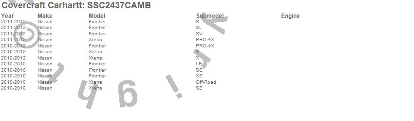Below is an abbreviated list of applications for the Covercraft Carhartt SeatSaver.Frontier, Xterra, Nissan, 2012, 2011, 2010