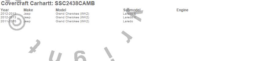 Below is an abbreviated list of applications for the Covercraft Carhartt SeatSaver.Grand Cherokee (WK2), Jeep, 2015, 2014, 2013, 2012, 2011