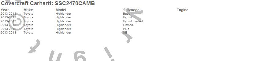 Below is an abbreviated list of applications for the Covercraft Carhartt SeatSaver.Highlander, Toyota, 2013